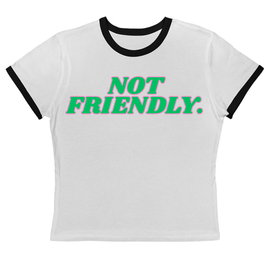 "Not Friendly" Women's Edgy Cropped Ringer Tee