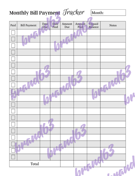 Monthly Bill Payment Tracker -Instant Download/Printable