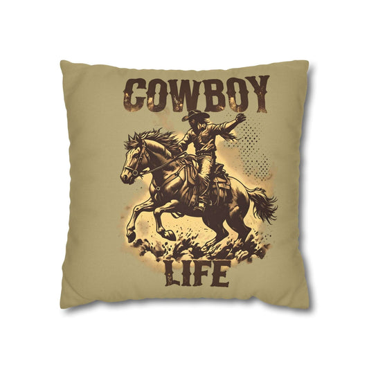 Cowboy Life Square Pillowcase – Rustic Home Decor for Western Enthusiasts