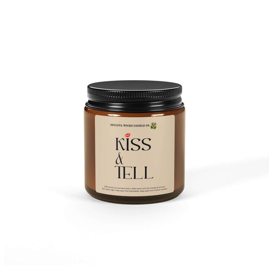 Kiss & Tell Scented Soy Candle in Amber Jar