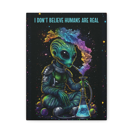 Cosmic Alien Hookah Wall Art Canvas Print - 'I Don't Believe Humans Are Real'