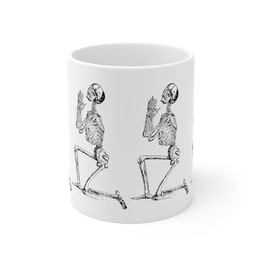 SALE Ceramic Mug - PRAYING SKELETON Mug, coffee, coffee lover, cup, wedding gift, Christmas Gift, Holiday Gift, Birthday gift, Tea Mug