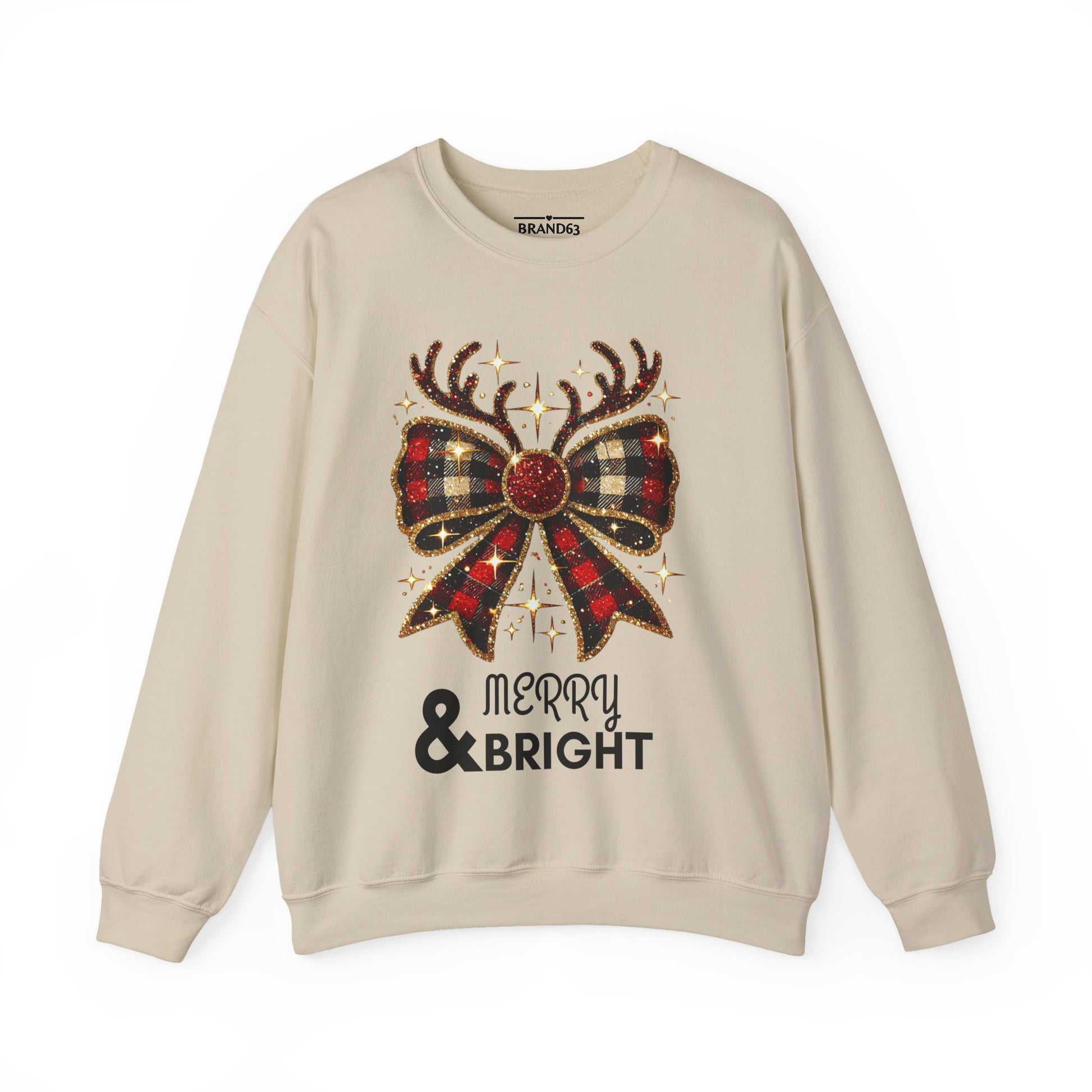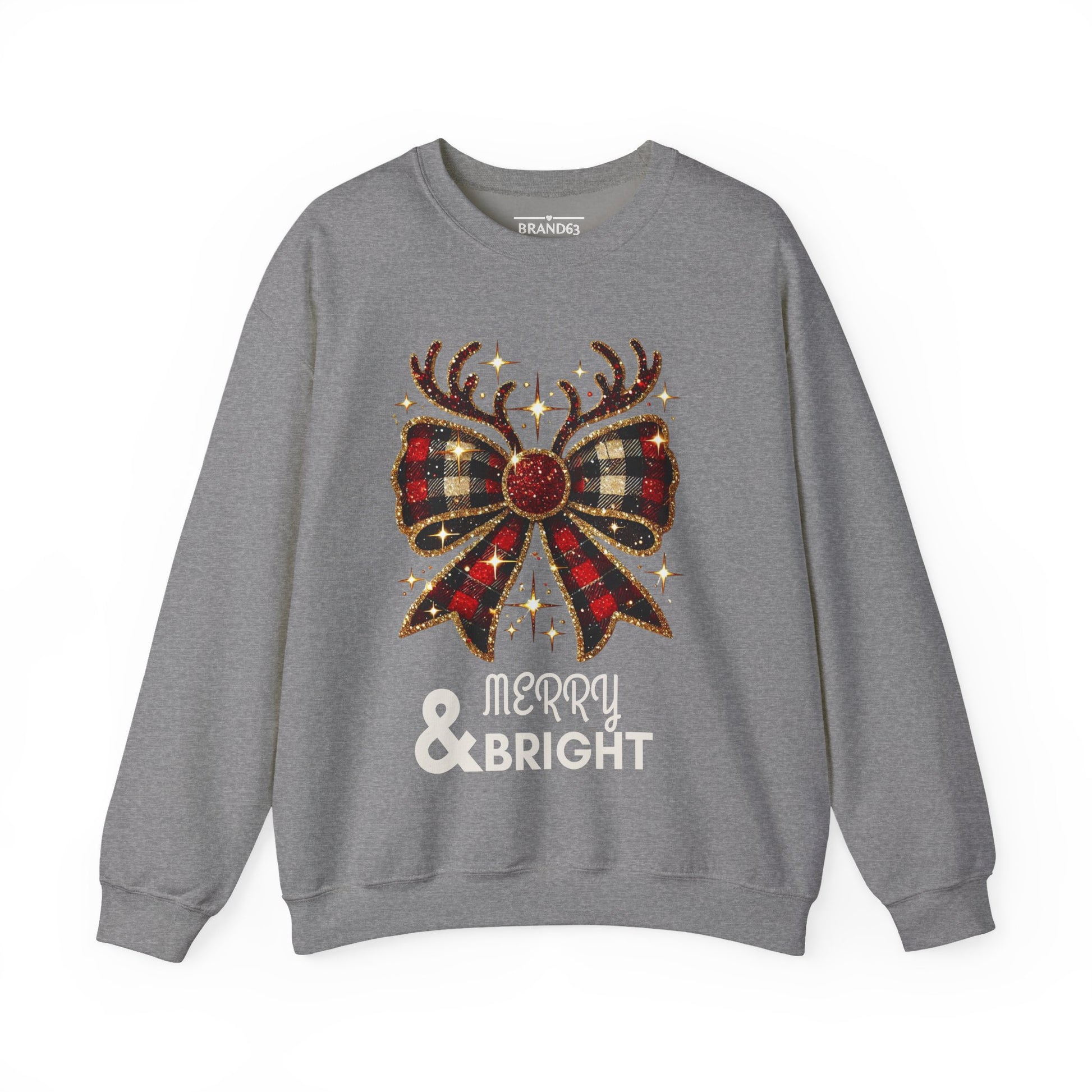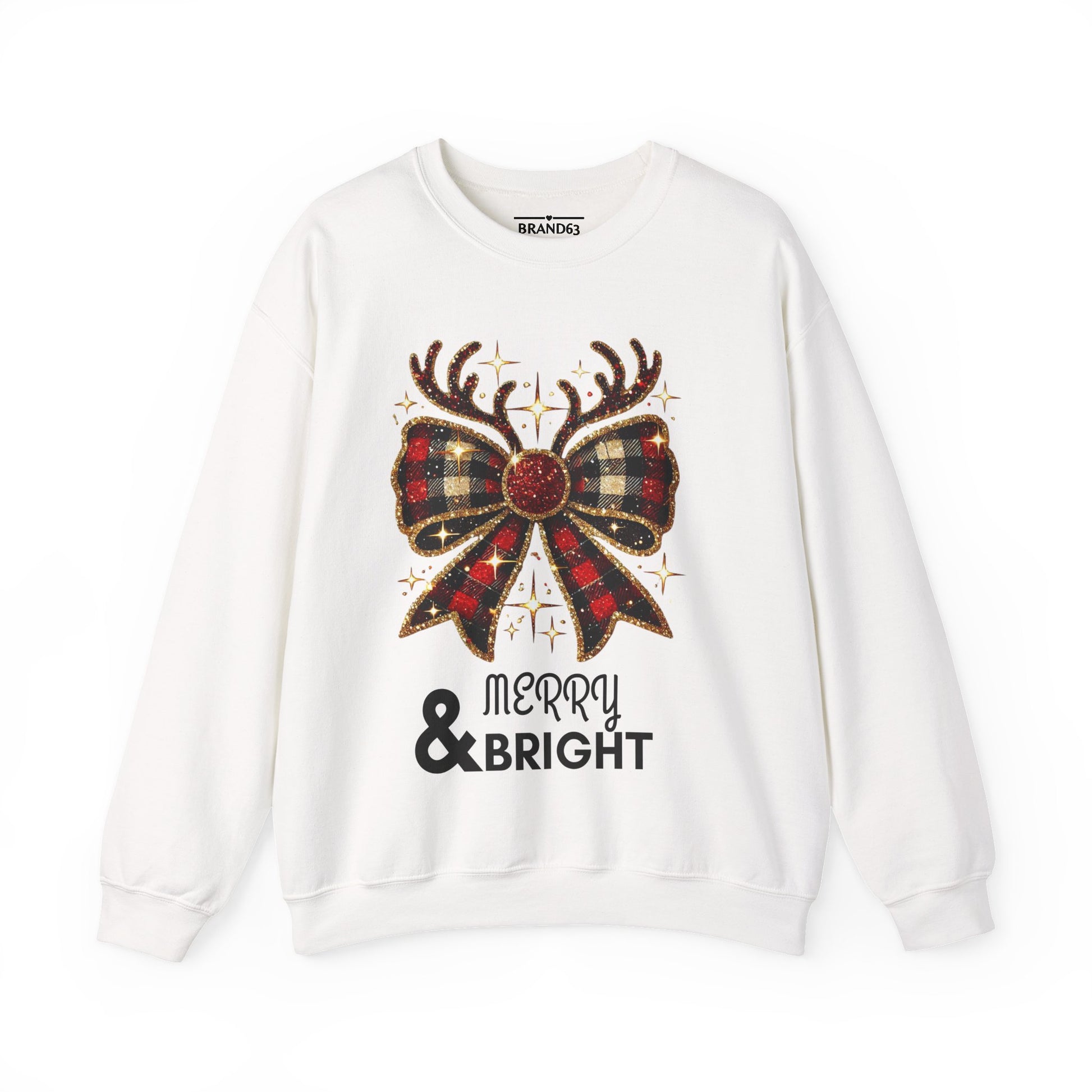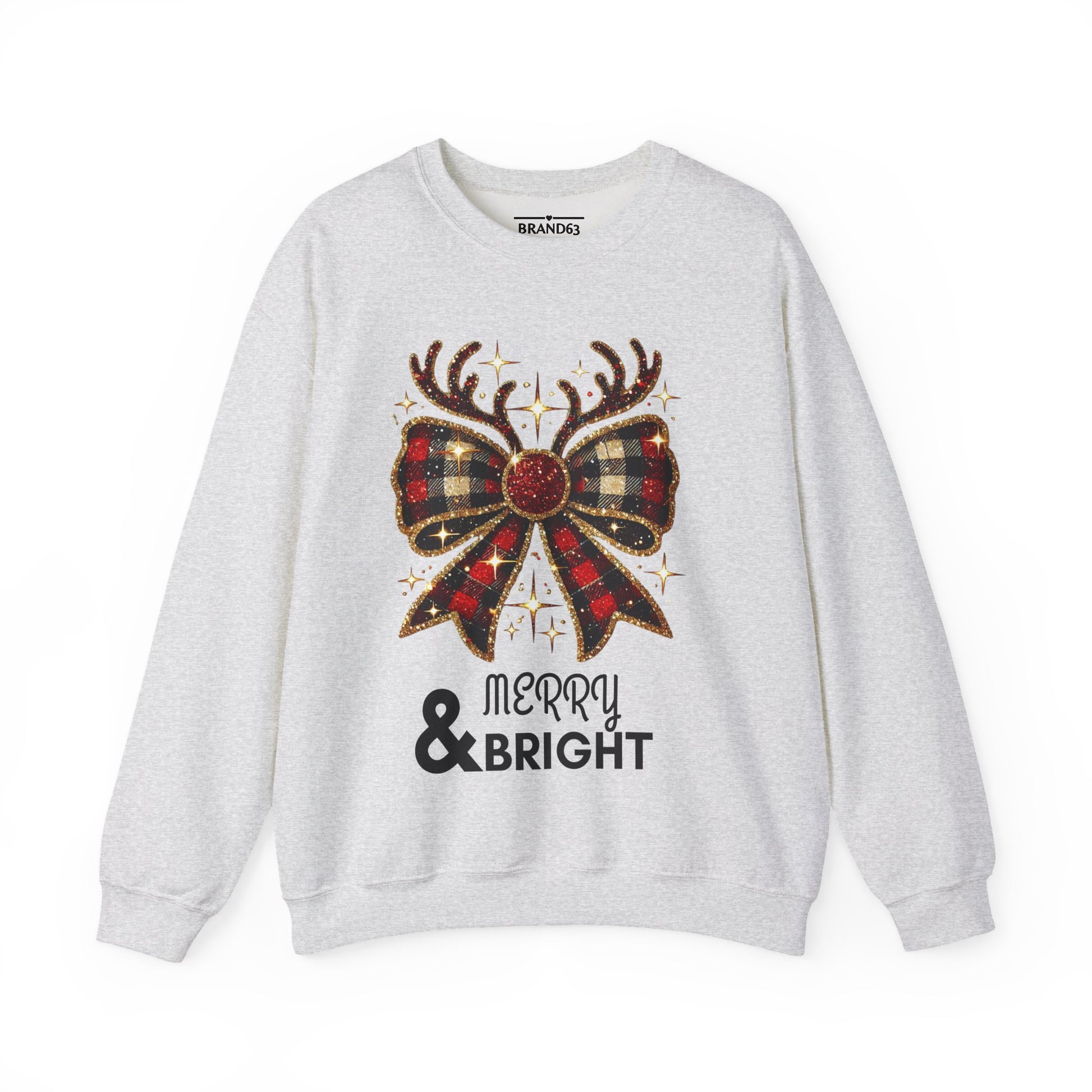 Wrap yourself in holiday cheer with this Merry & Bright crewneck sweatshirt, featuring a festive design with a charming plaid bow and reindeer antlers. Made with a cozy blend of cotton and polyester, this medium-heavy sweatshirt is perfect for colder months, adding warmth and style to any holiday outfit.