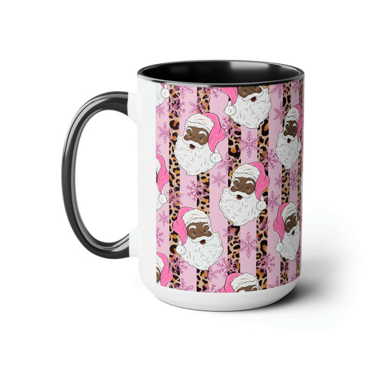 Exclusive Black Santa Wrap Around Christmas Mug, Two-Tone Coffee 15oz Mugs,