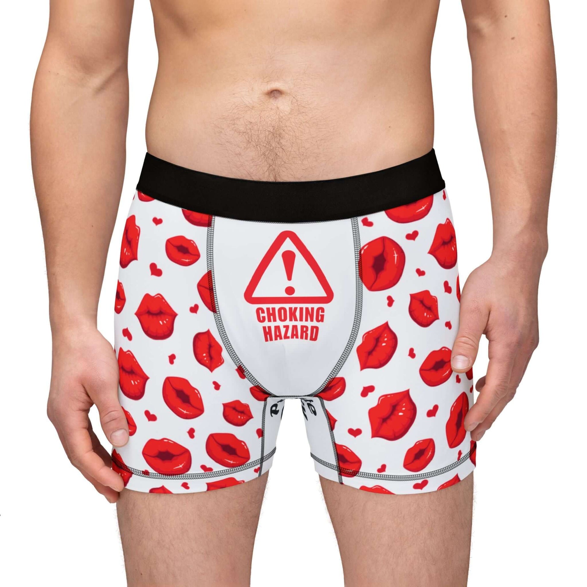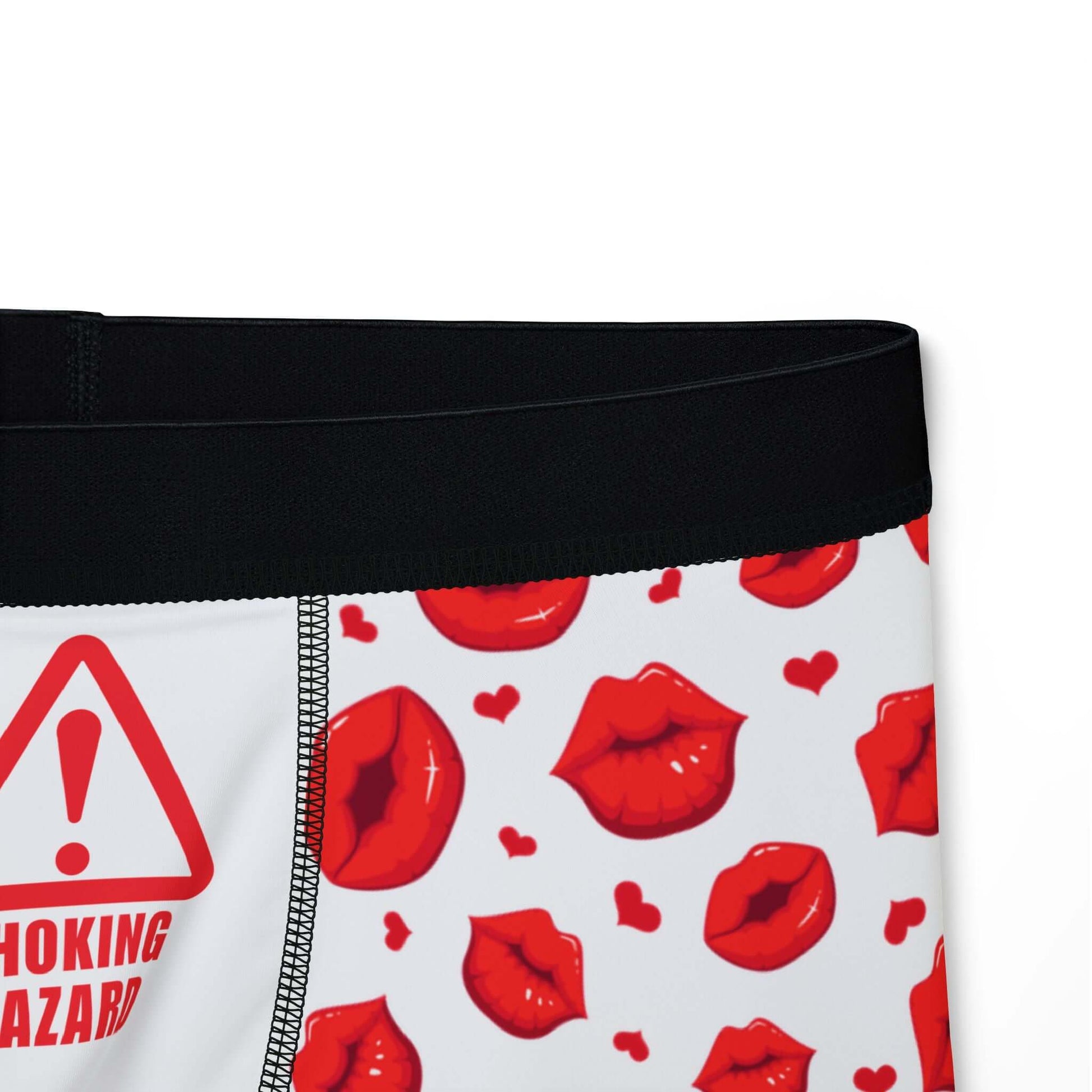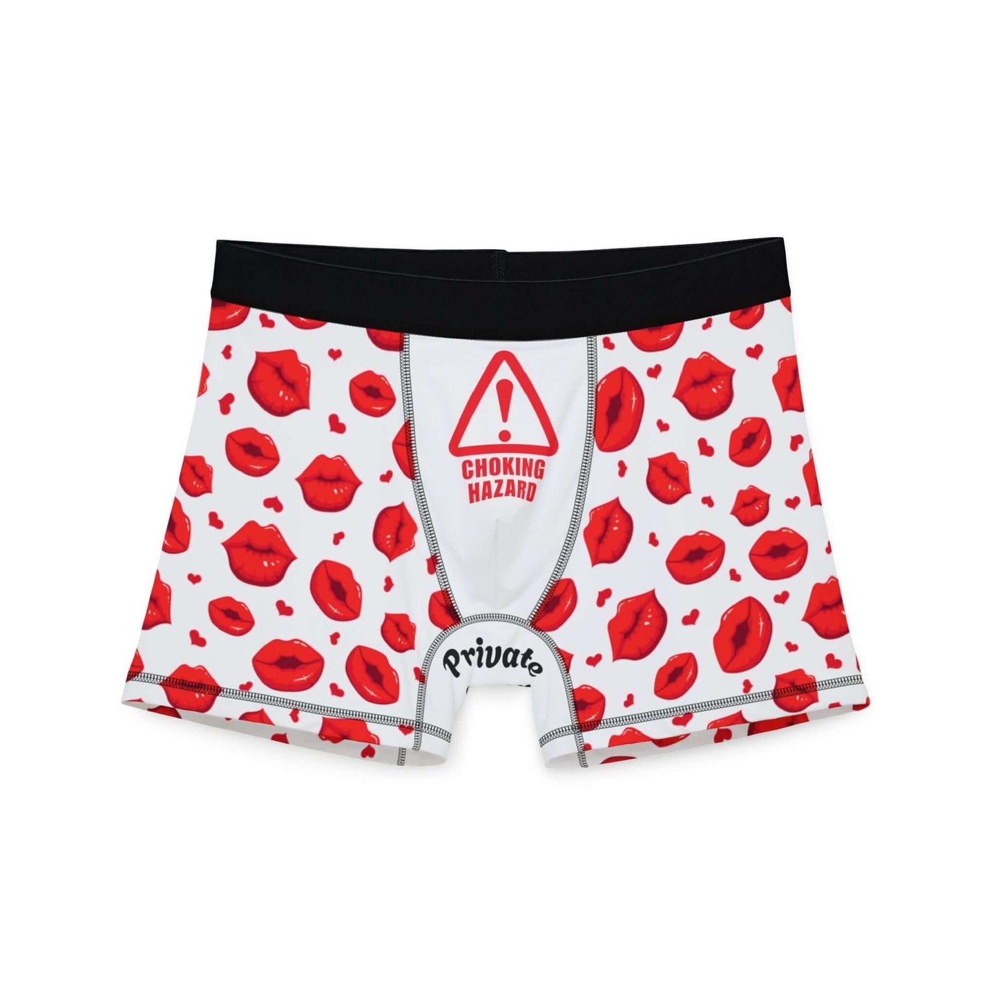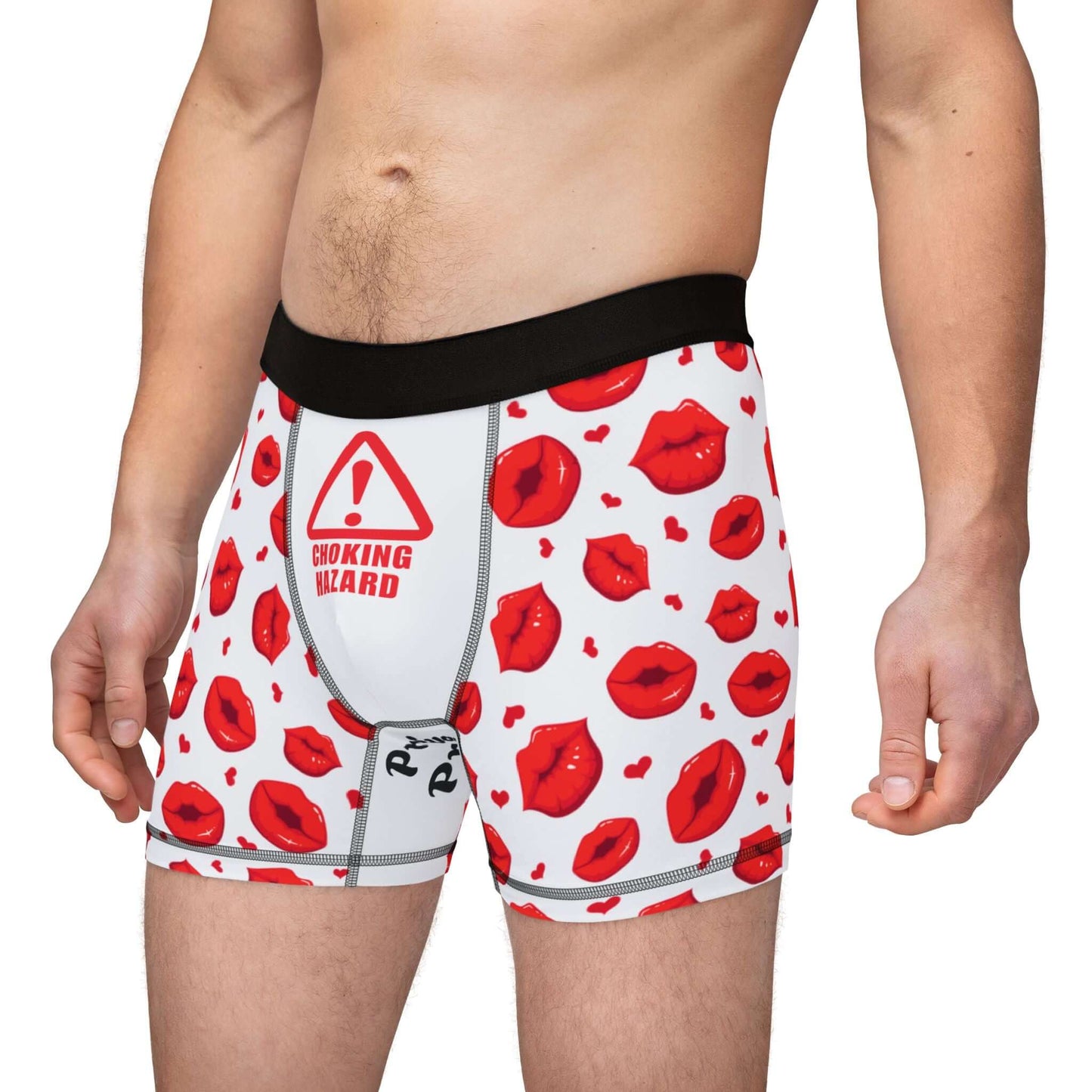 Men's Valentine's Day Boxers -"Choking Hazard" Print w/Juicy Kissing Lips | Printed Gusset "Private Property"