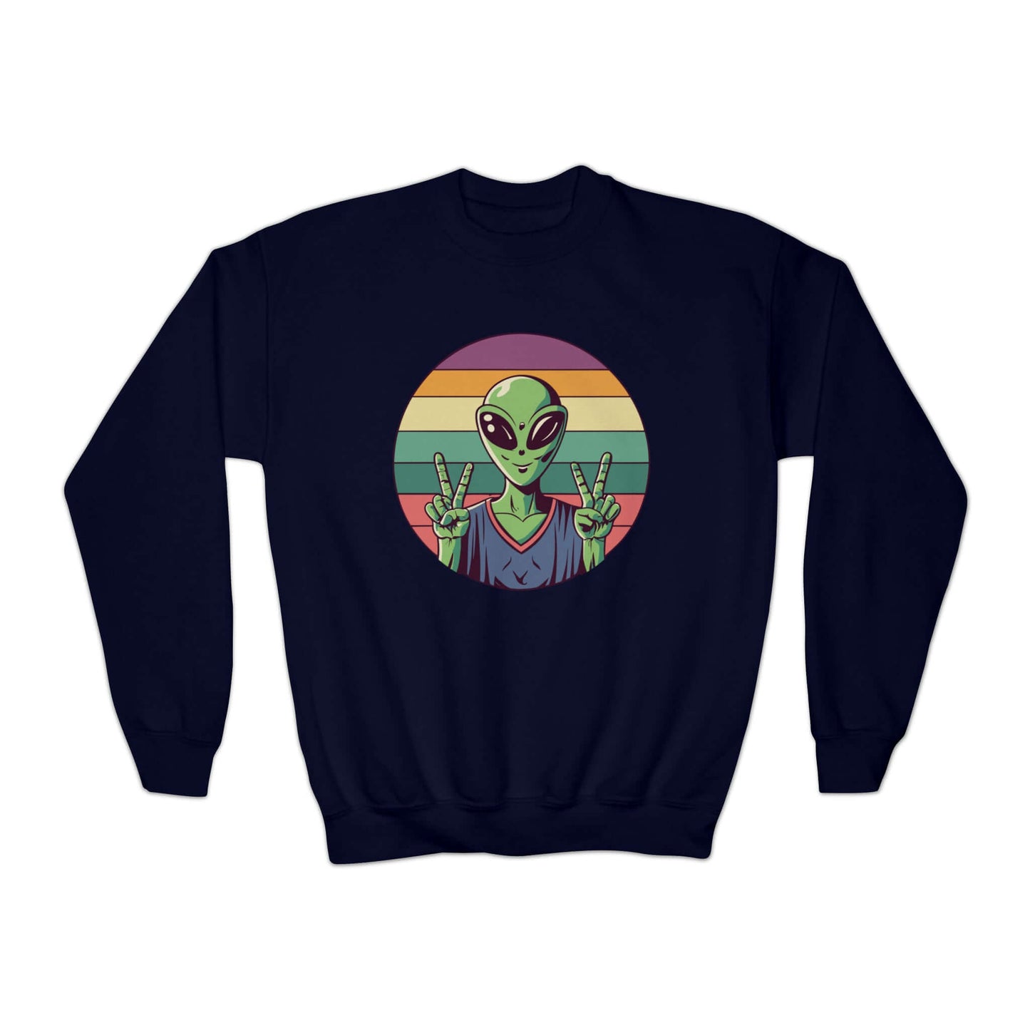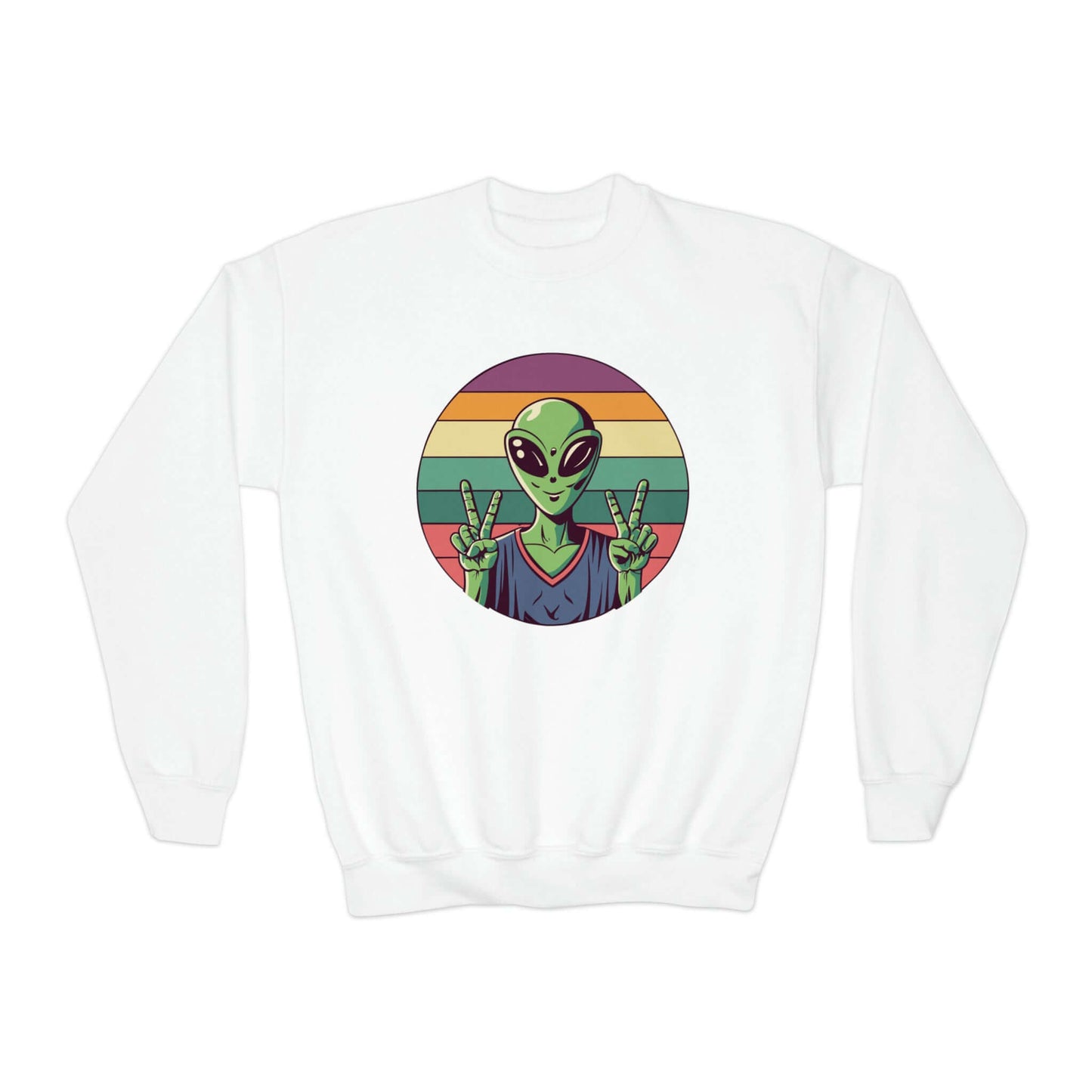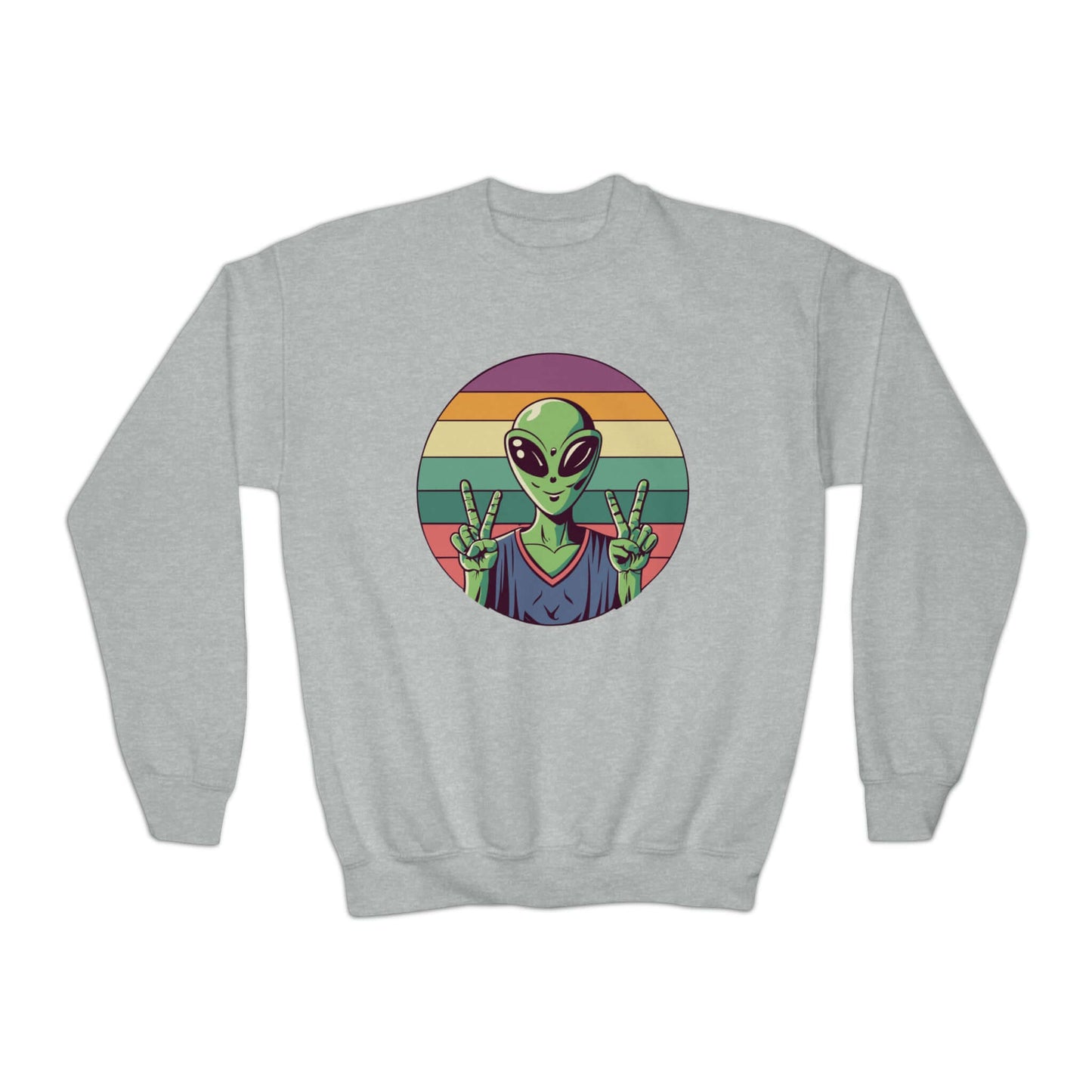 Alien Youth Crewneck Sweatshirt | Peace Sign Alien Graphic Sweatshirt (unisex)