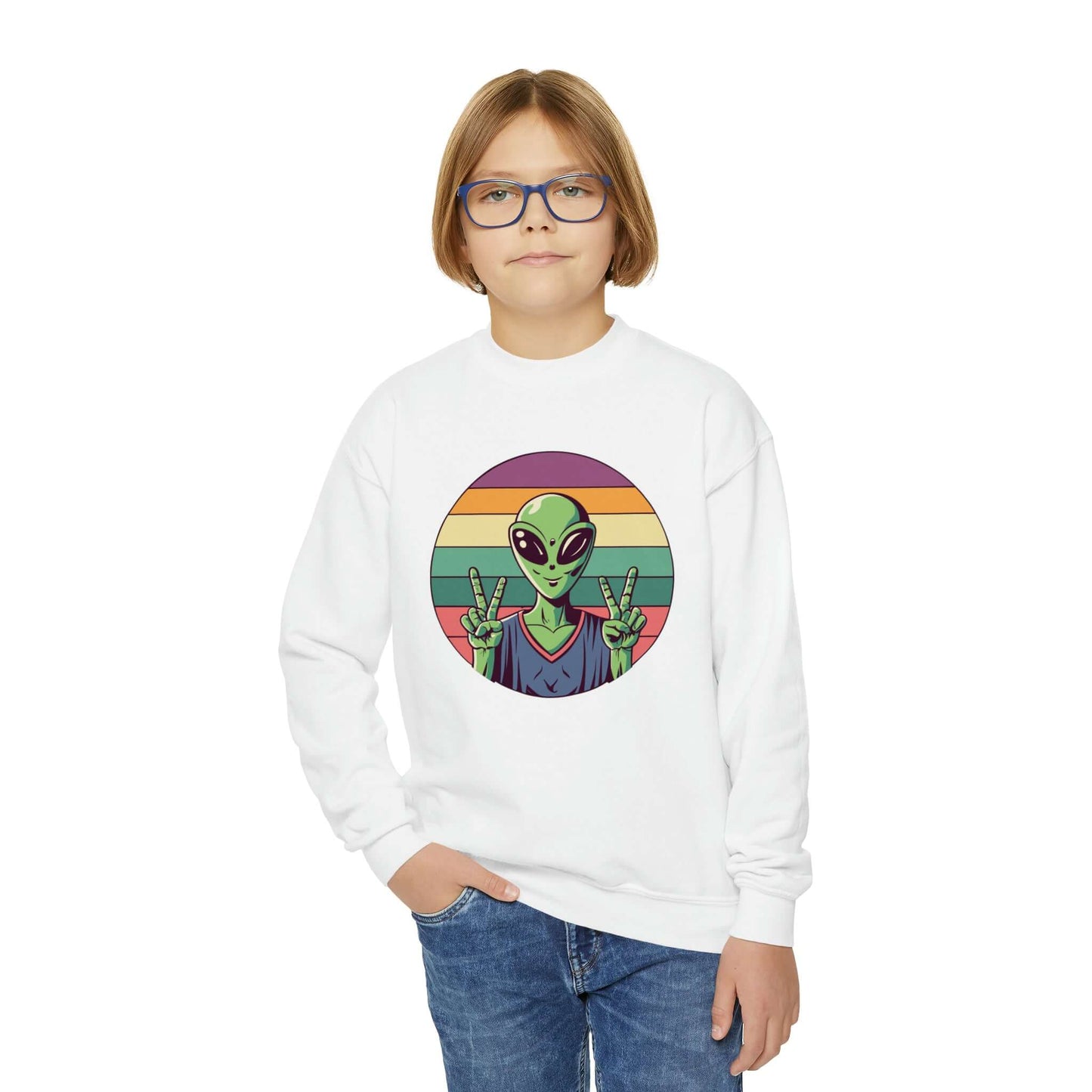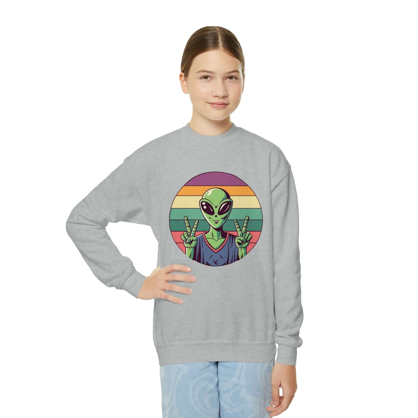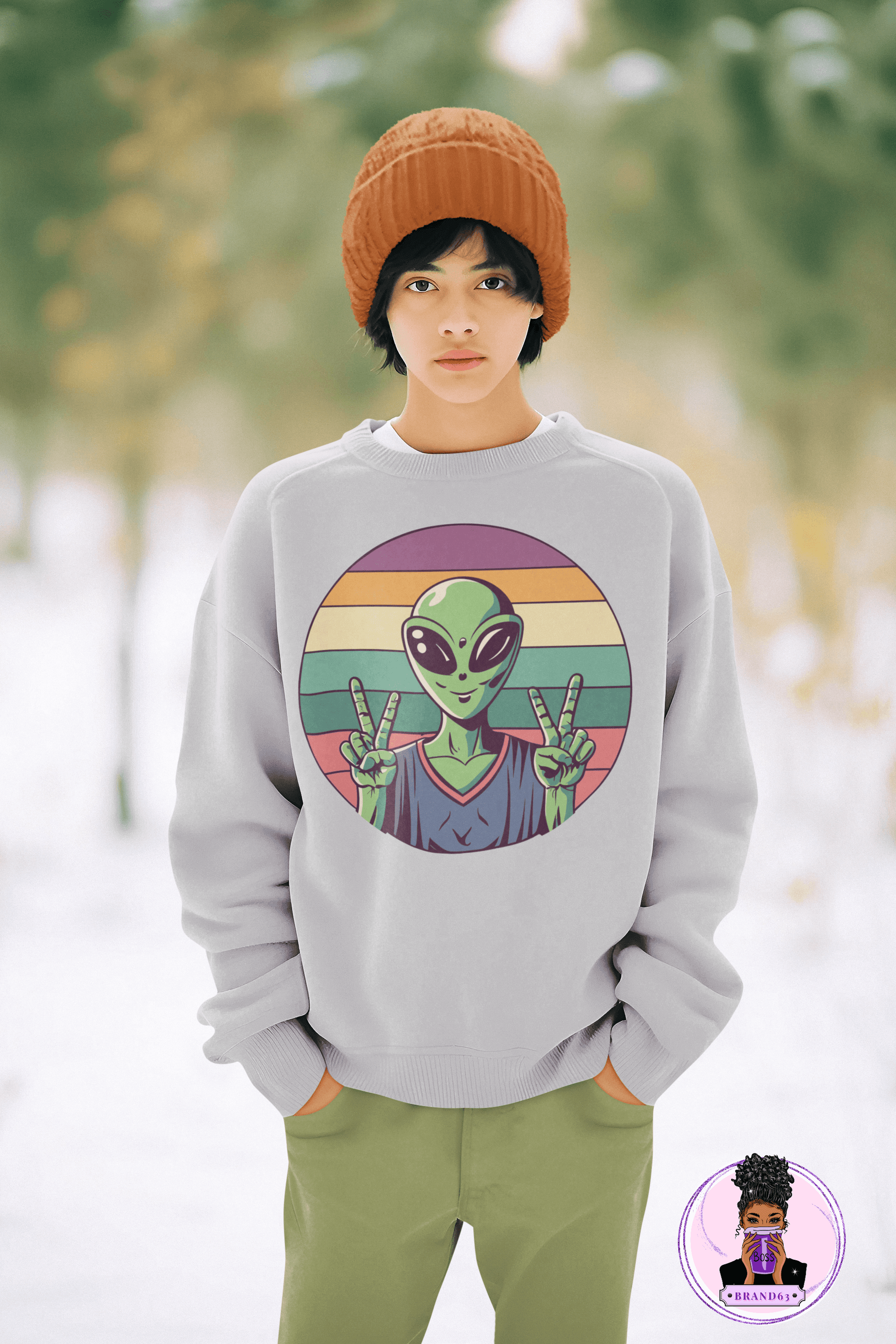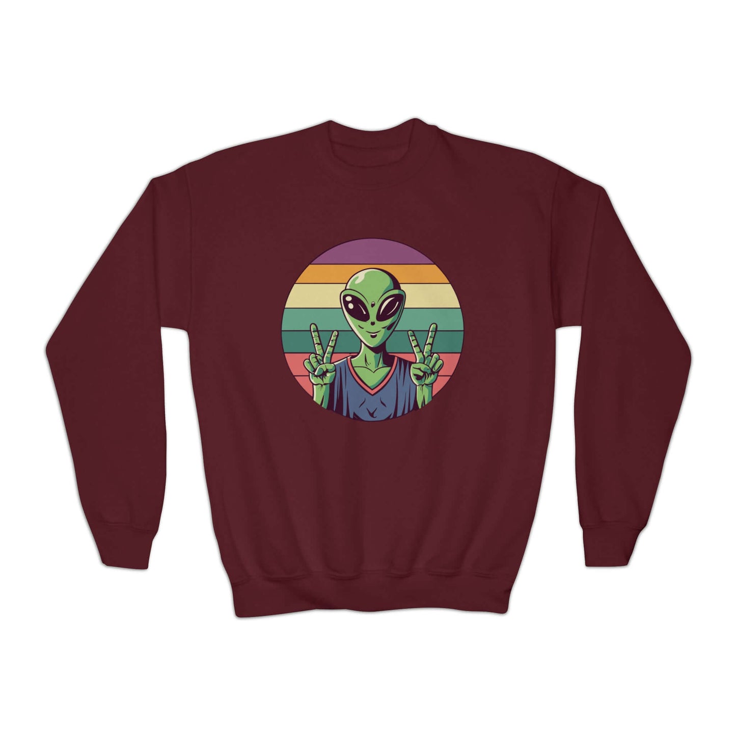 Alien Youth Crewneck Sweatshirt | Peace Sign Alien Graphic Sweatshirt (unisex)