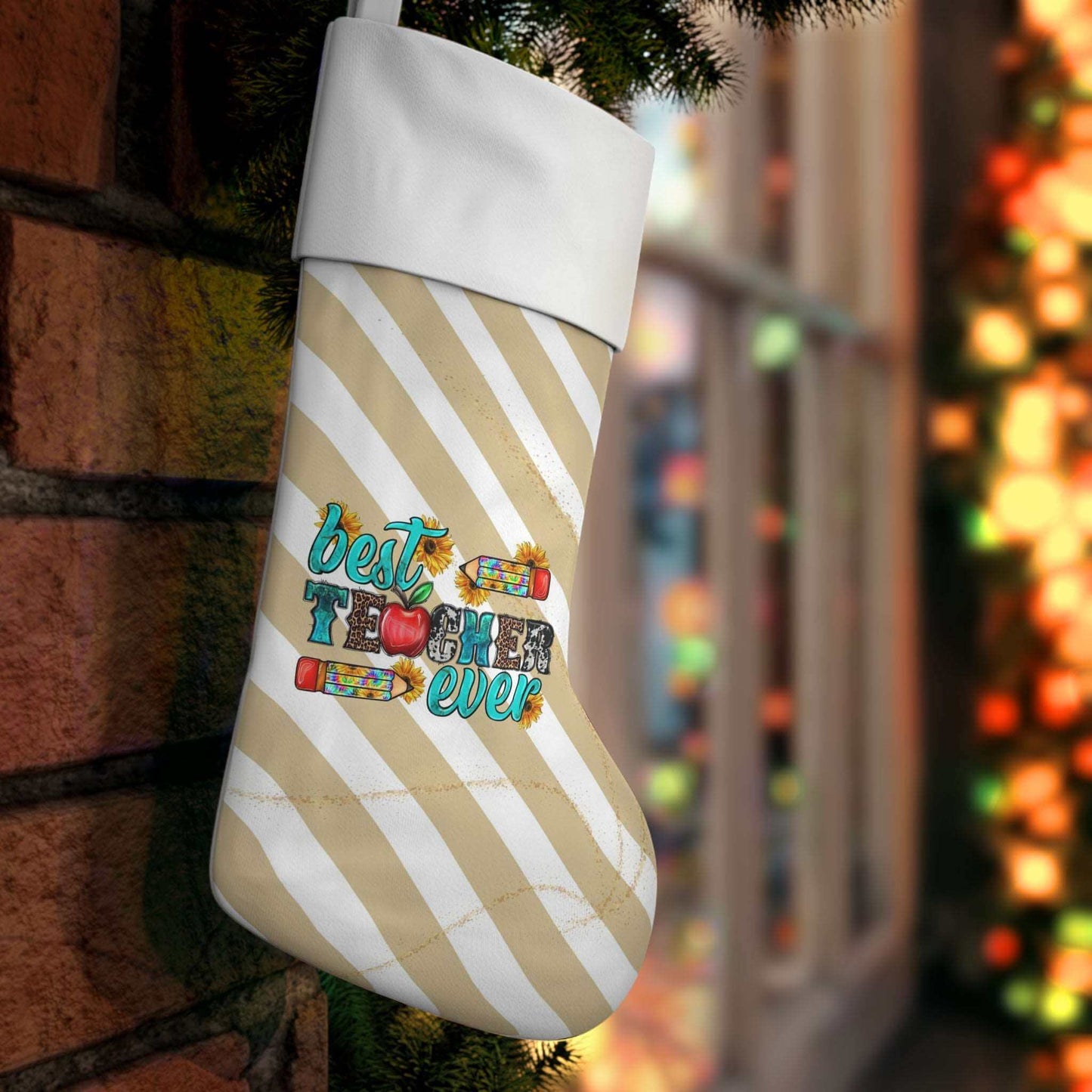 Our Teacher Appreciation Christmas stocking adds a personalized touch to any tree, fireplace, or stair railing!
