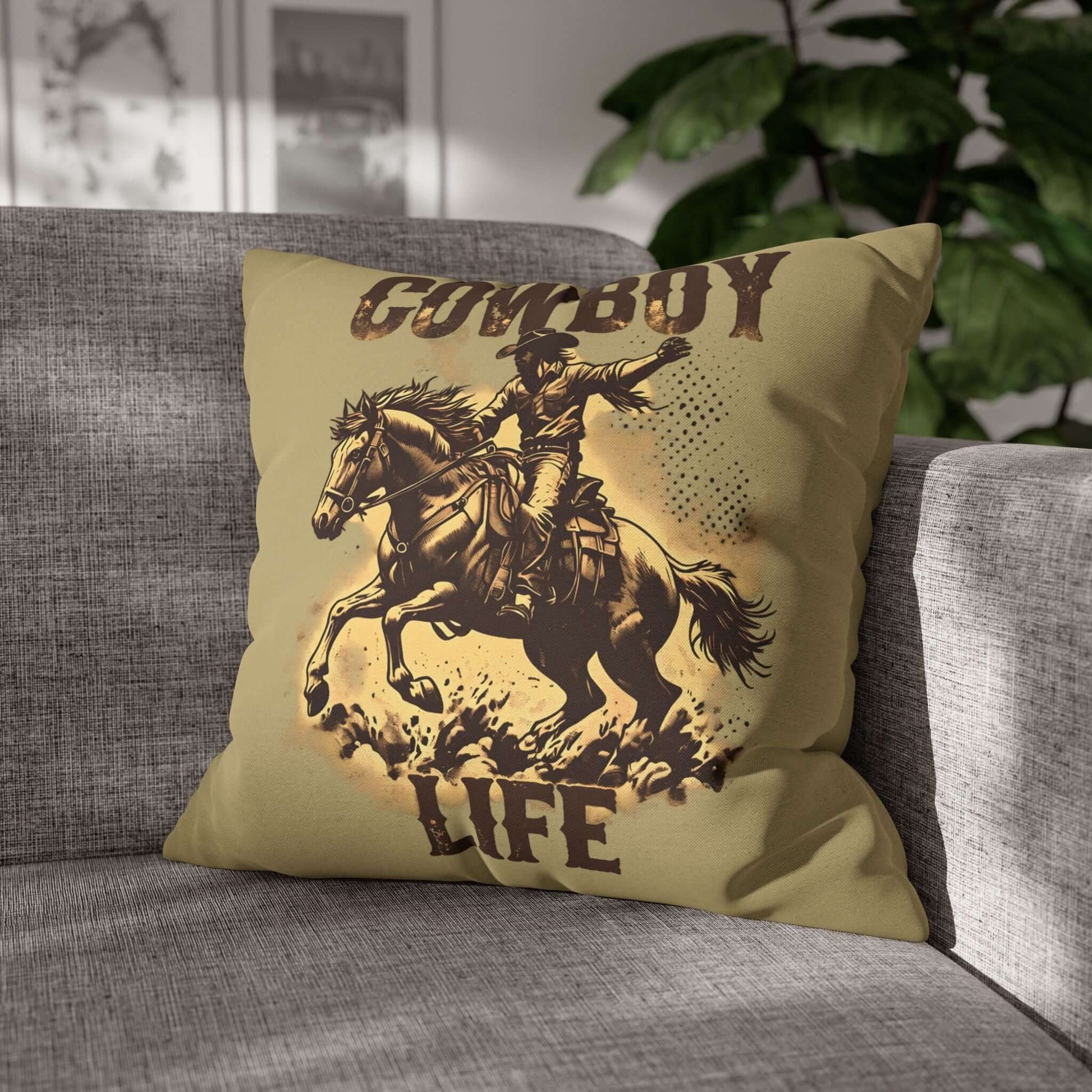 Cowboy Life Square Pillowcase – Rustic Home Decor for Western Enthusiasts