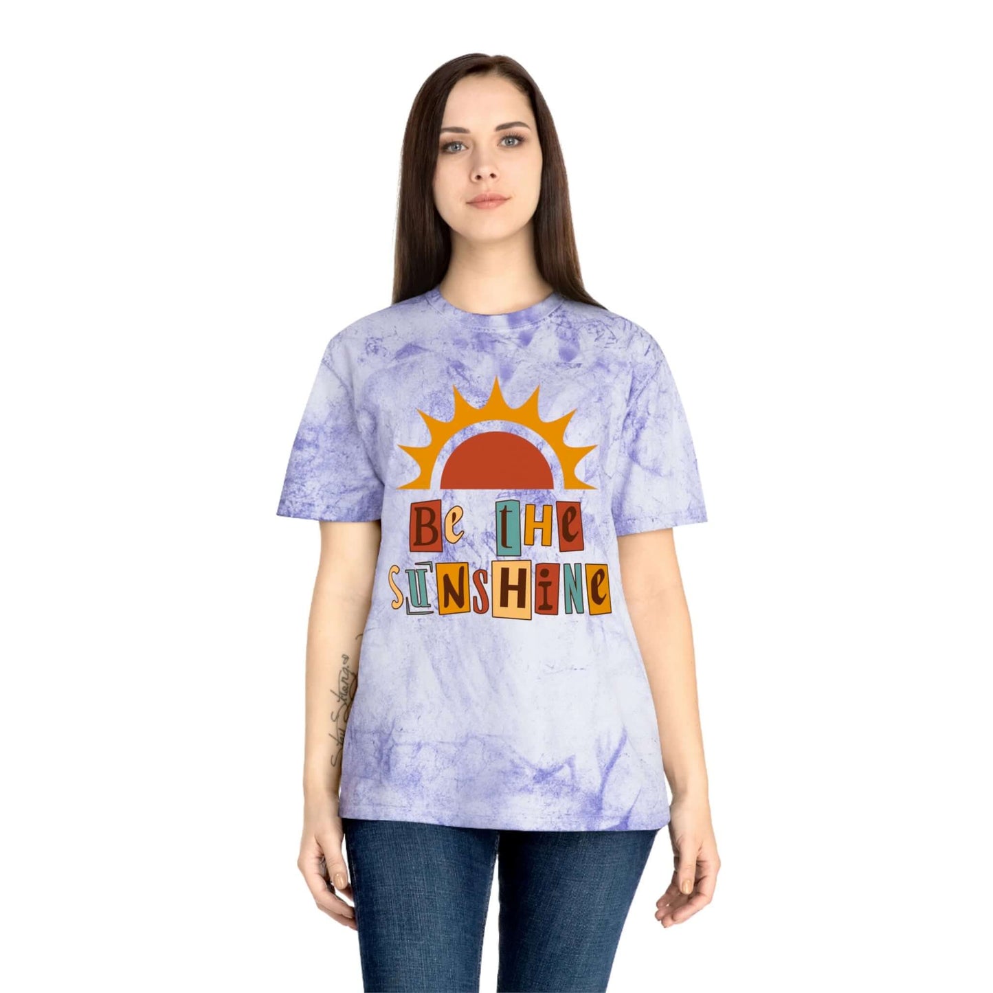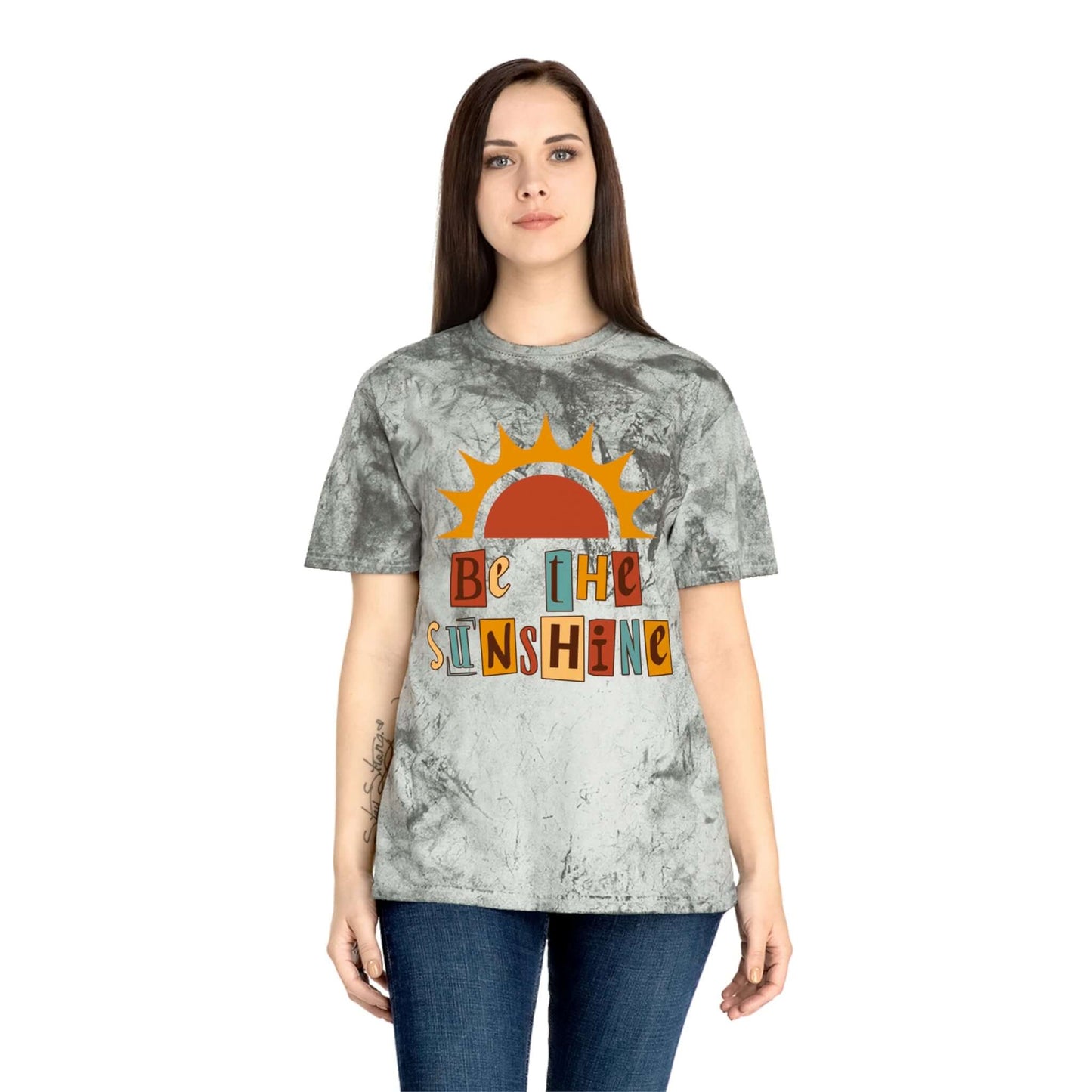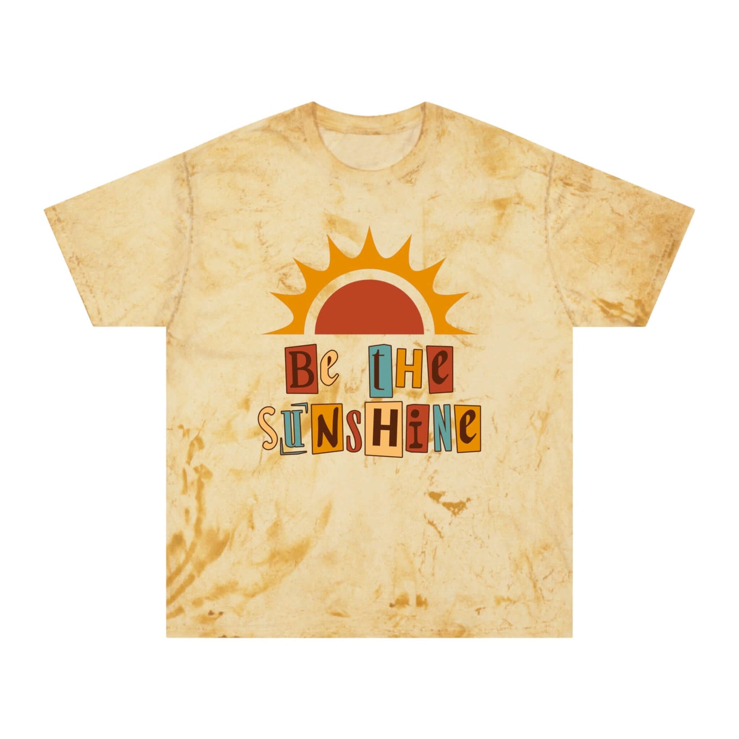 Brand63's Exclusive "Be The Sunshine" Comfort Colors T-shirt has a unique color blast pattern on every shirt. Made 100% with incredibly soft, ring-spun cotton, each tee is soft-washed and garment-dyed. Its relaxed fit makes it the perfect daily choice for any casual occasion. Perfect Summer T-shirt.
