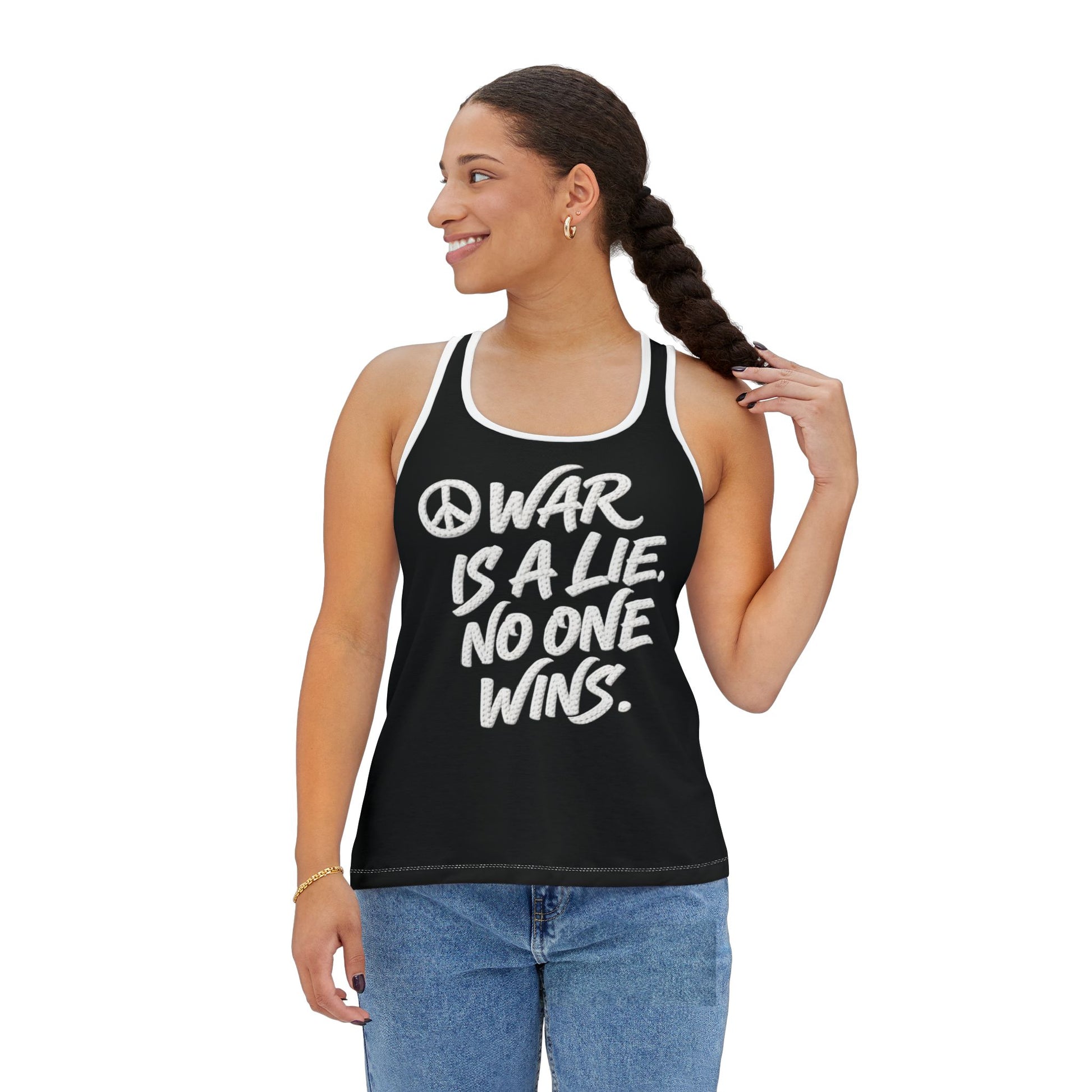 War & Peace Faux Embroidery Racerback Tank Top